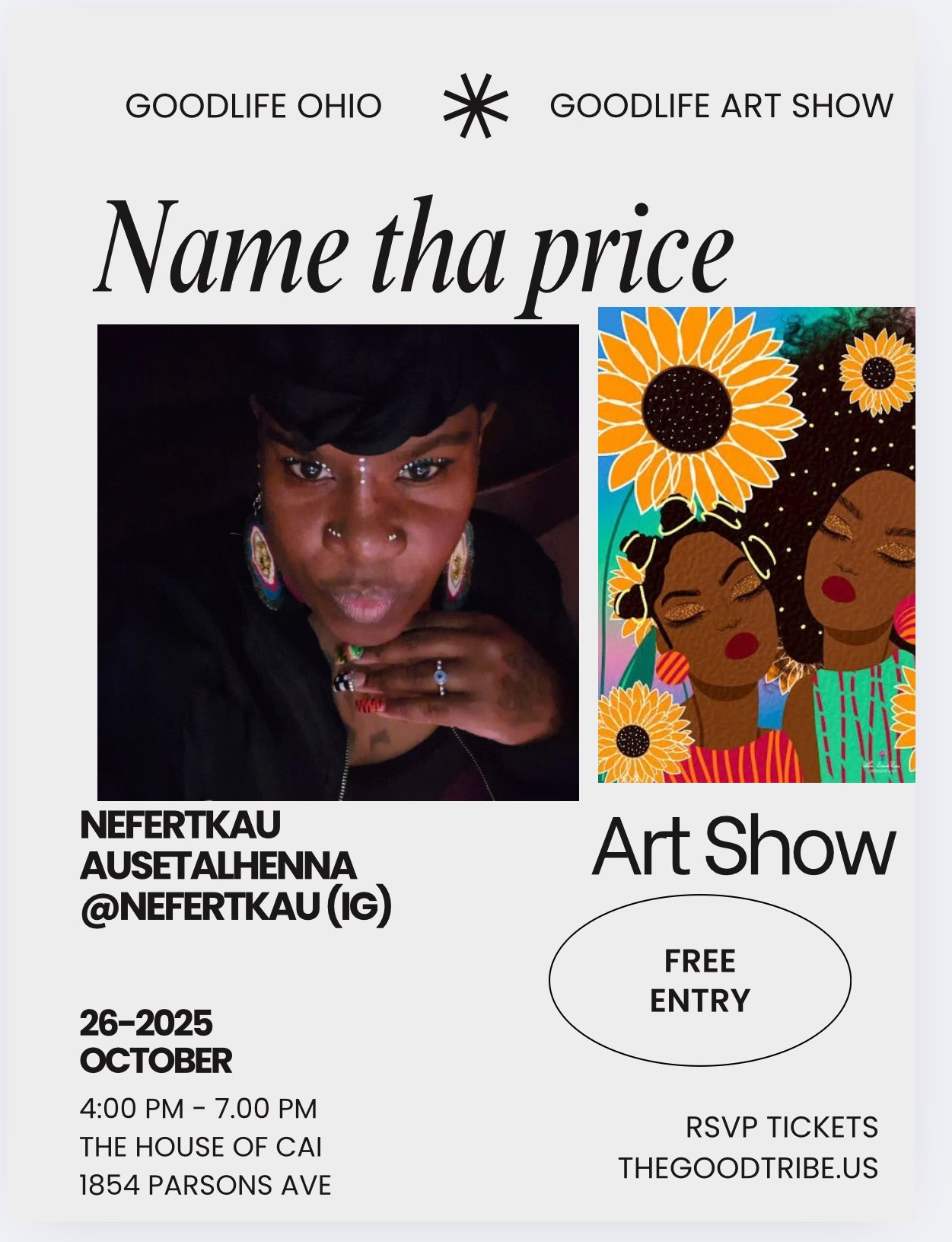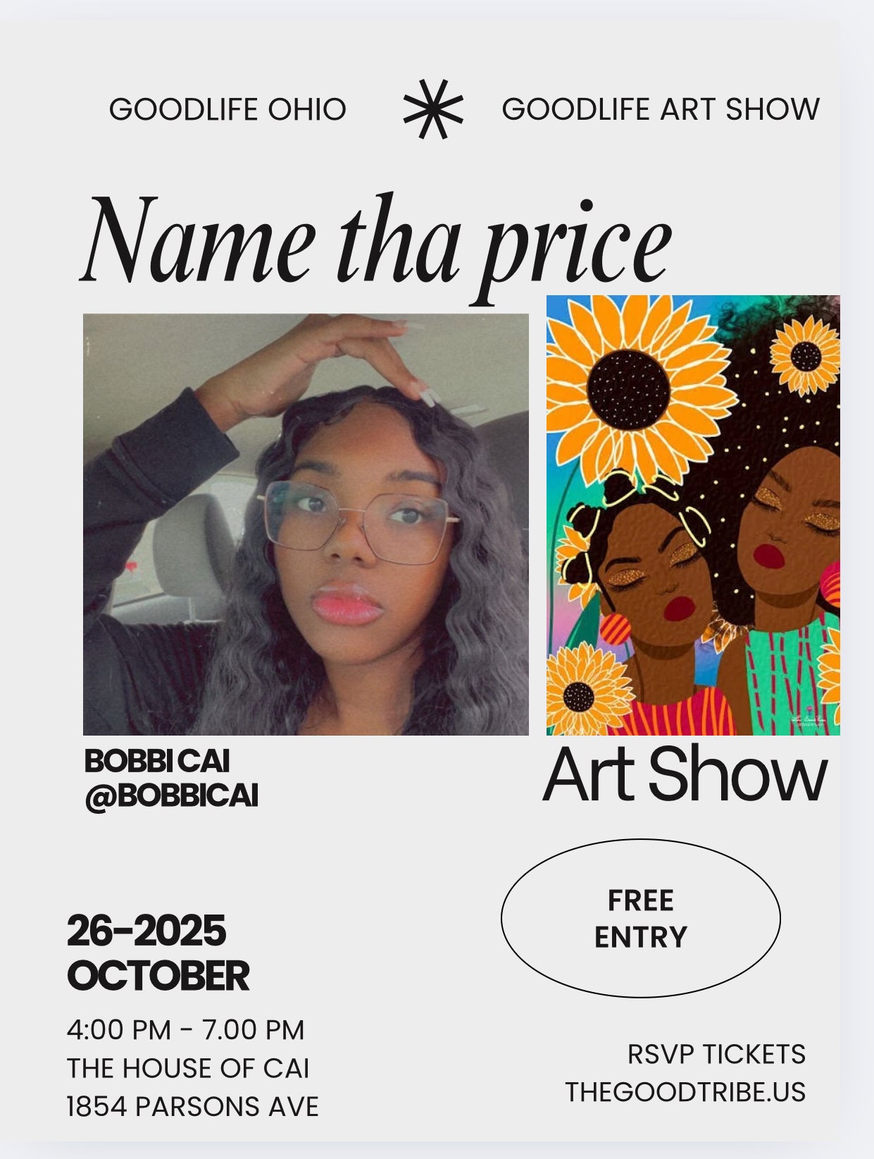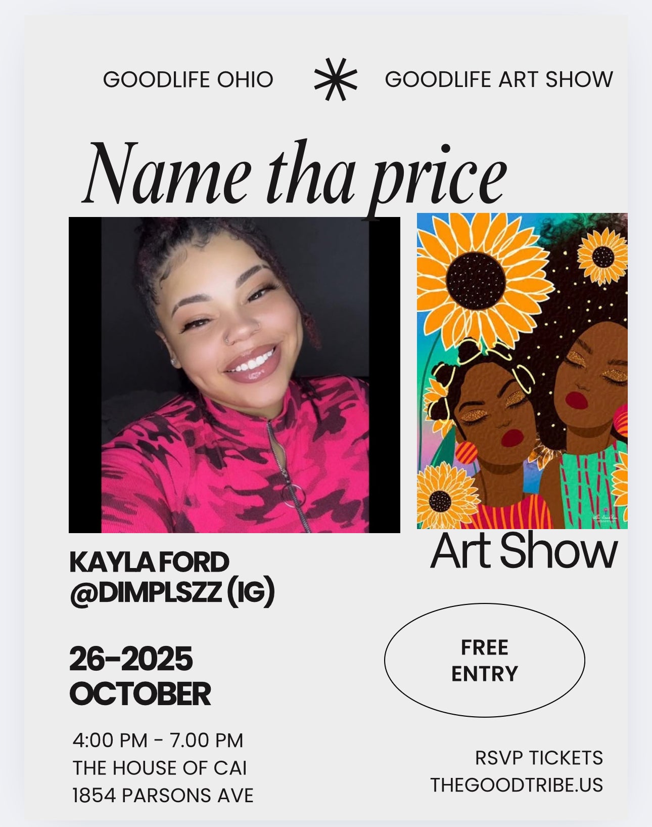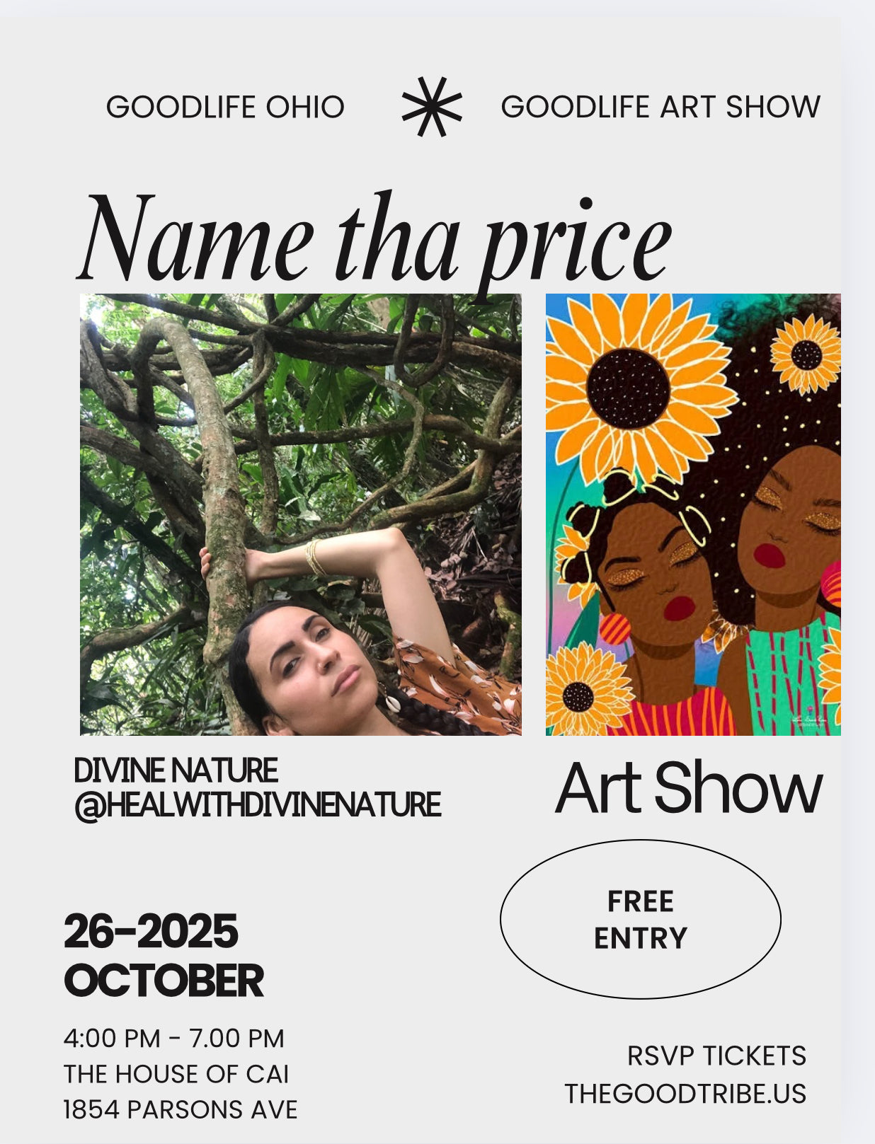 The Goodlife Art show is completely free to enter. A name your price art show featuring new and seasoned artist will hold space on October 26th 2025. Come to see community, and celebrate Scorpio season with Goodlife Russ